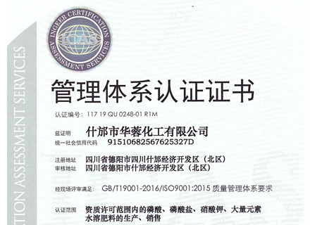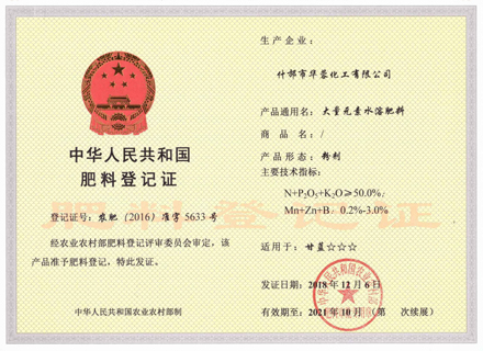 什邡市華蓉化工有限公司原名什邡華蓉科技有限責任公司,位于磷礦資源豐富的四川省什邡市,距成都60公里,交通運輸便利,是一家專業(yè)生產(chǎn)、研發(fā)精細磷化工系列產(chǎn)品的大型生產(chǎn)企業(yè)。生產(chǎn)設(shè)備先進,技術(shù)研發(fā)團隊強大,現(xiàn)公司占地面積約30000平方米,擁有5條生產(chǎn)線,主要生產(chǎn)大量元素水溶肥、磷酸二氫鉀、磷酸二氫銨、磷酸氫二銨、硝酸鉀、磷酸脲以及磷酸,年總產(chǎn)量為100000噸以上。公司資質(zhì)齊全,管理規(guī)范,已取得安全生產(chǎn)許可證、ISO9001:2015質(zhì)量管理體系認證、食品生產(chǎn)許可證、工業(yè)產(chǎn)品生產(chǎn)許可證、自營進出口經(jīng)營權(quán)進出口證書以及出口歐盟國家部分產(chǎn)品的REACH證書。